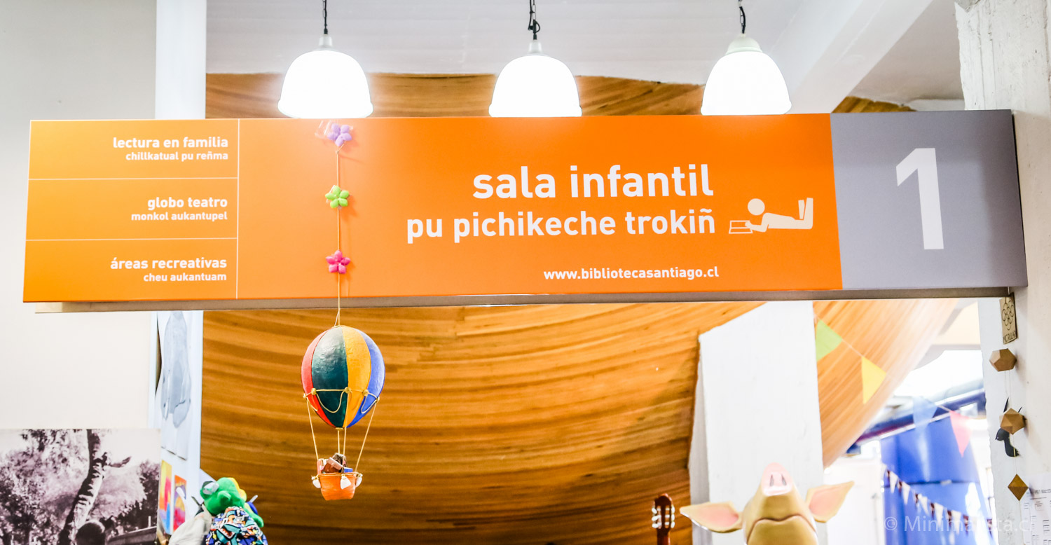 Nos encantó una sección que tenía libros que explican situaciones a los niños. “Tengo piojos”, “En avión por primera vez”, “Primer día de escuela” y “Mis papás viven separados” son algunos de los libros de esa sección. Es una linda manera de apoyar a los niños que enfrentan una situación difícil o nueva. Otra cosa bakan: la señalética está en español, mapudungún y lenguaje de señas.