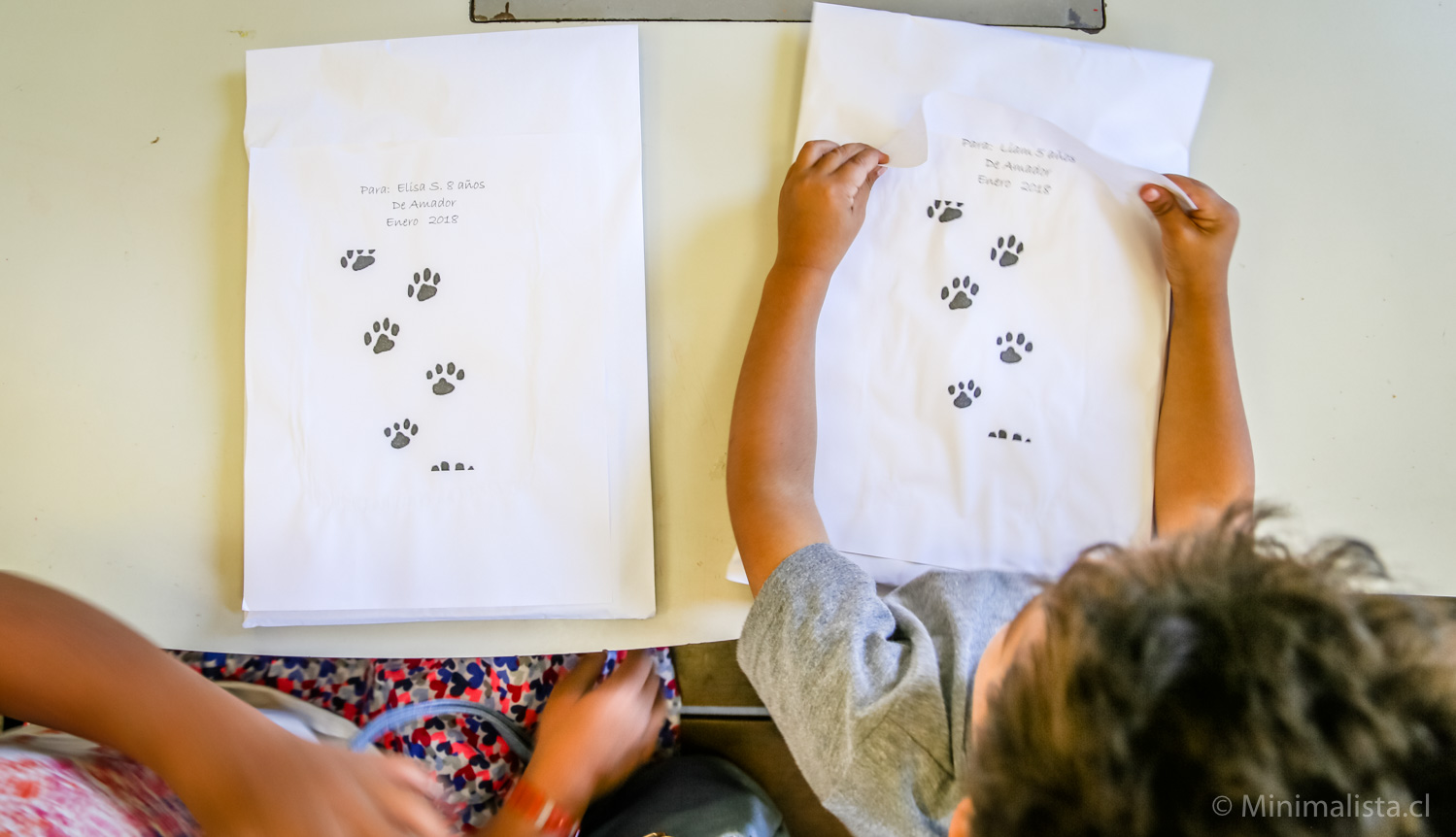 En nuestra primera visita, Elisa le pidió a Amador que le recomendara libros de Egipto y Liam le pidió libros de dinosaurios.  Nuestra próxima visita fue 10 días más tarde y los dos tenían un sobre con su nombre esperándolos en la biblioteca.