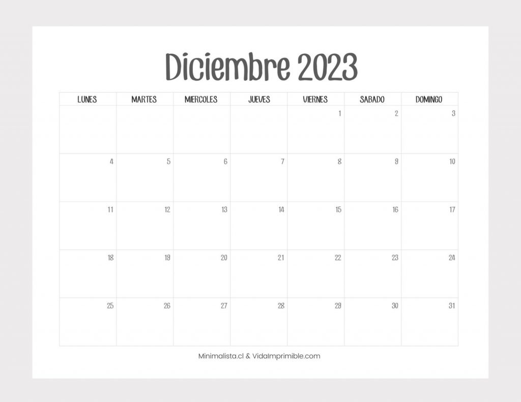 Calendario Diciembre 2023 para Imprimir Descarga Gratis