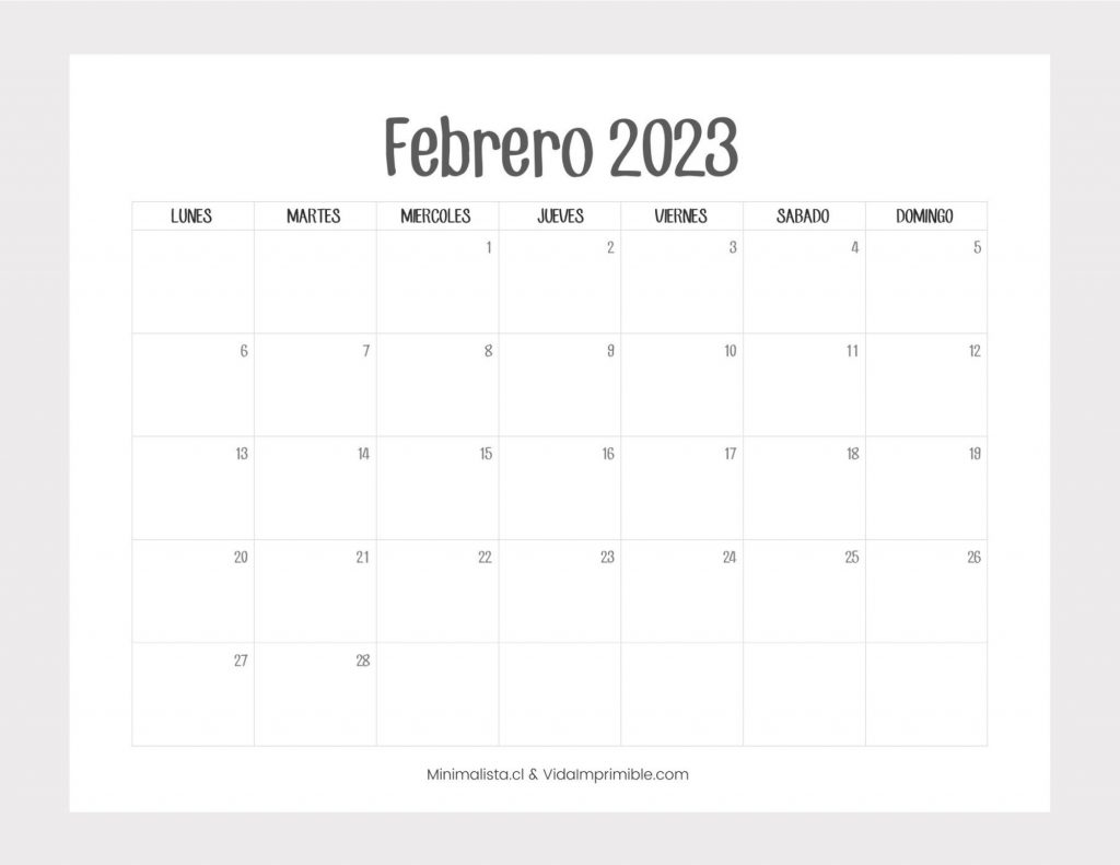 Calendario Febrero 2023 para Imprimir Descarga Gratis