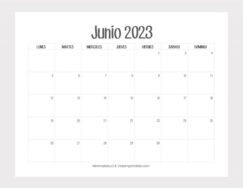Calendario Junio 2023 para Imprimir Descarga Gratis