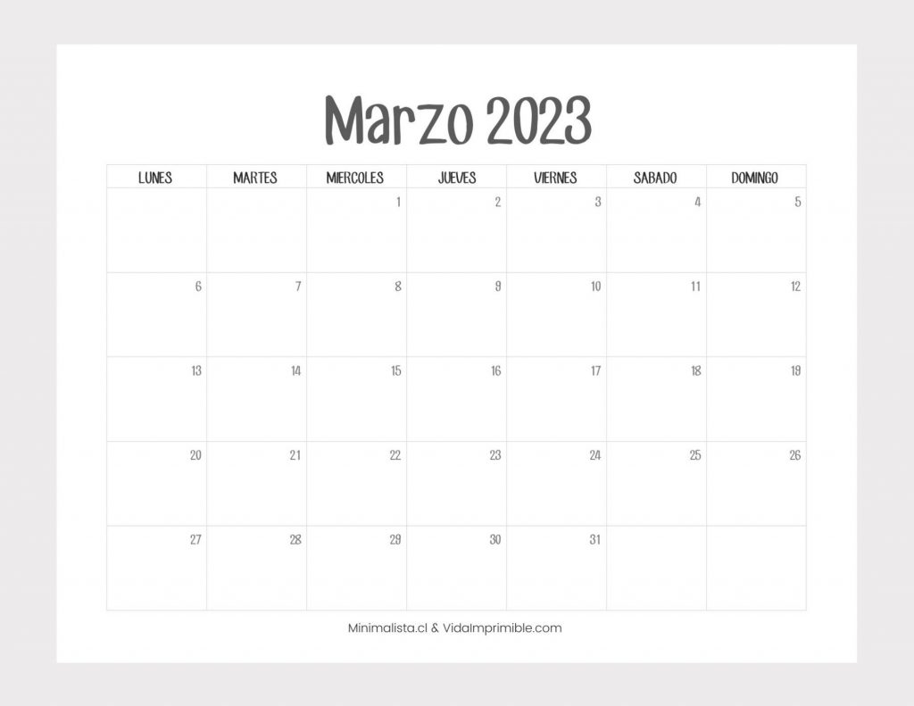 Calendario Marzo 2023 para Imprimir Descarga Gratis