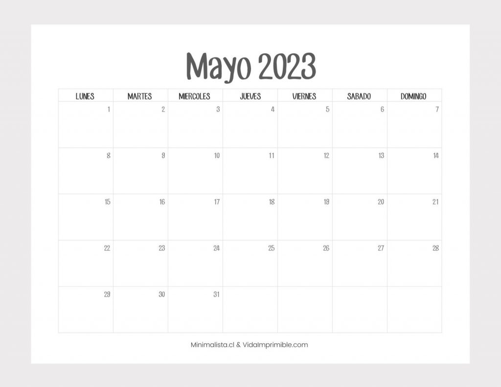 Calendario Mayo 2023 para Imprimir Descarga Gratis