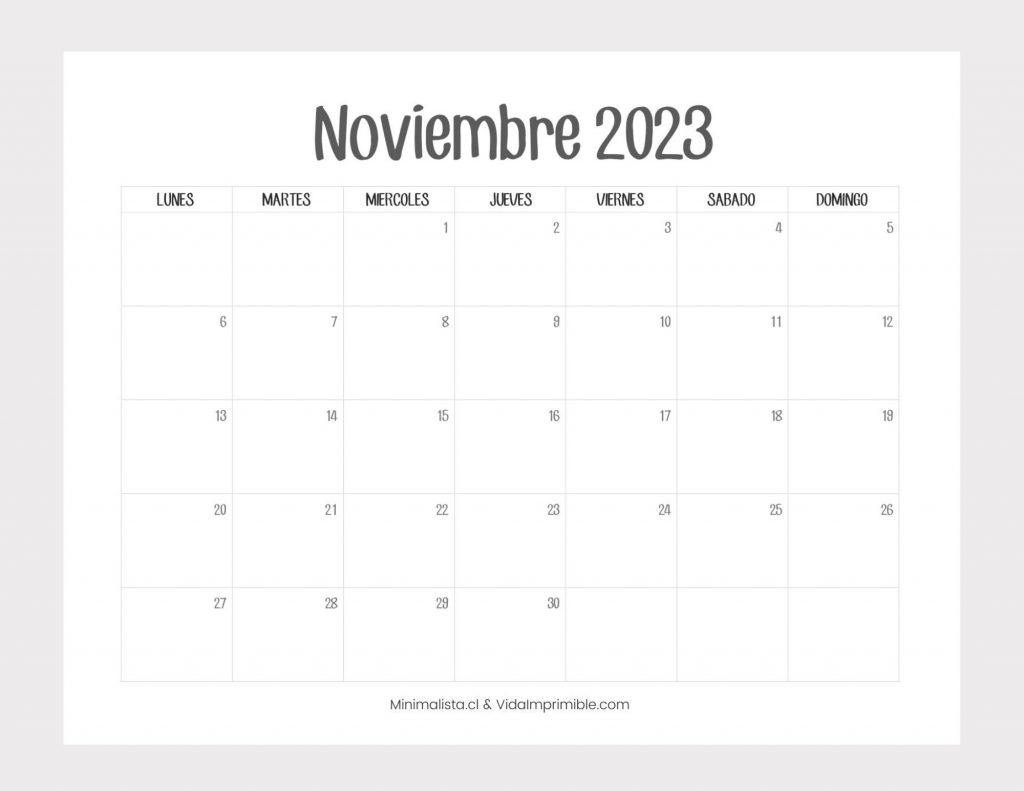 Calendario Noviembre 2023 para Imprimir Descarga Gratis
