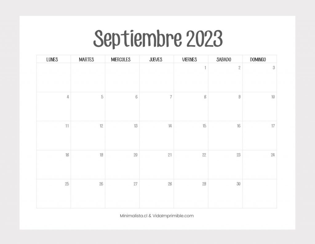 Calendario Septiembre 2023 para Imprimir Descarga Gratis