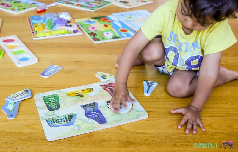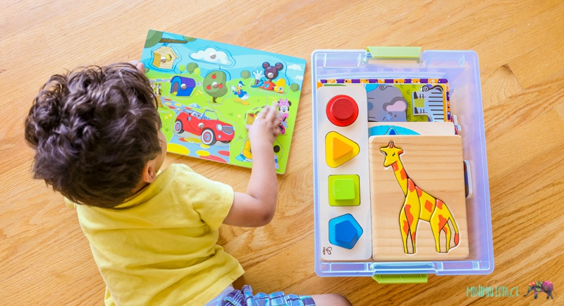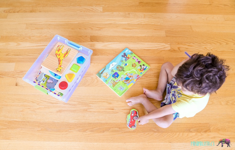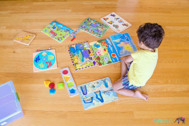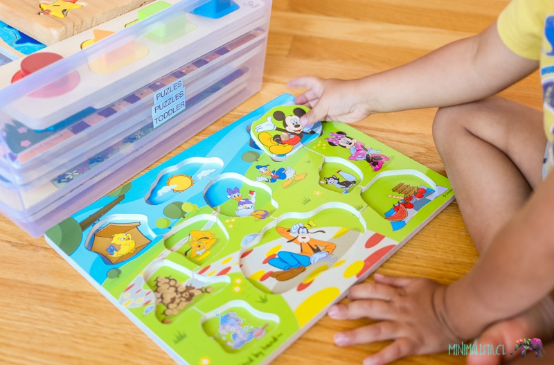 Cuando Elisa era chiquitita sufrimos con piezas de puzzles perdidas y juguetes por todos lados. Era difícil que ella se concentrara con un juguete por más de 5 minutos, pero como iba al jardín todo el día no nos preocupamos o dimos el tiempo de buscar una solución.