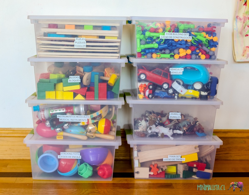 Limitar sus juguetes a 8 cajas significó donar UN MONTÓN de juguetes, especialmente los que ya no servían para su aprendizaje porque eran para niños más pequeños… aunque dejamos una cajita pequeña con nuestros juguetes de bebé favoritos guardada en el ático por si decidimos tener un tercer hijo.