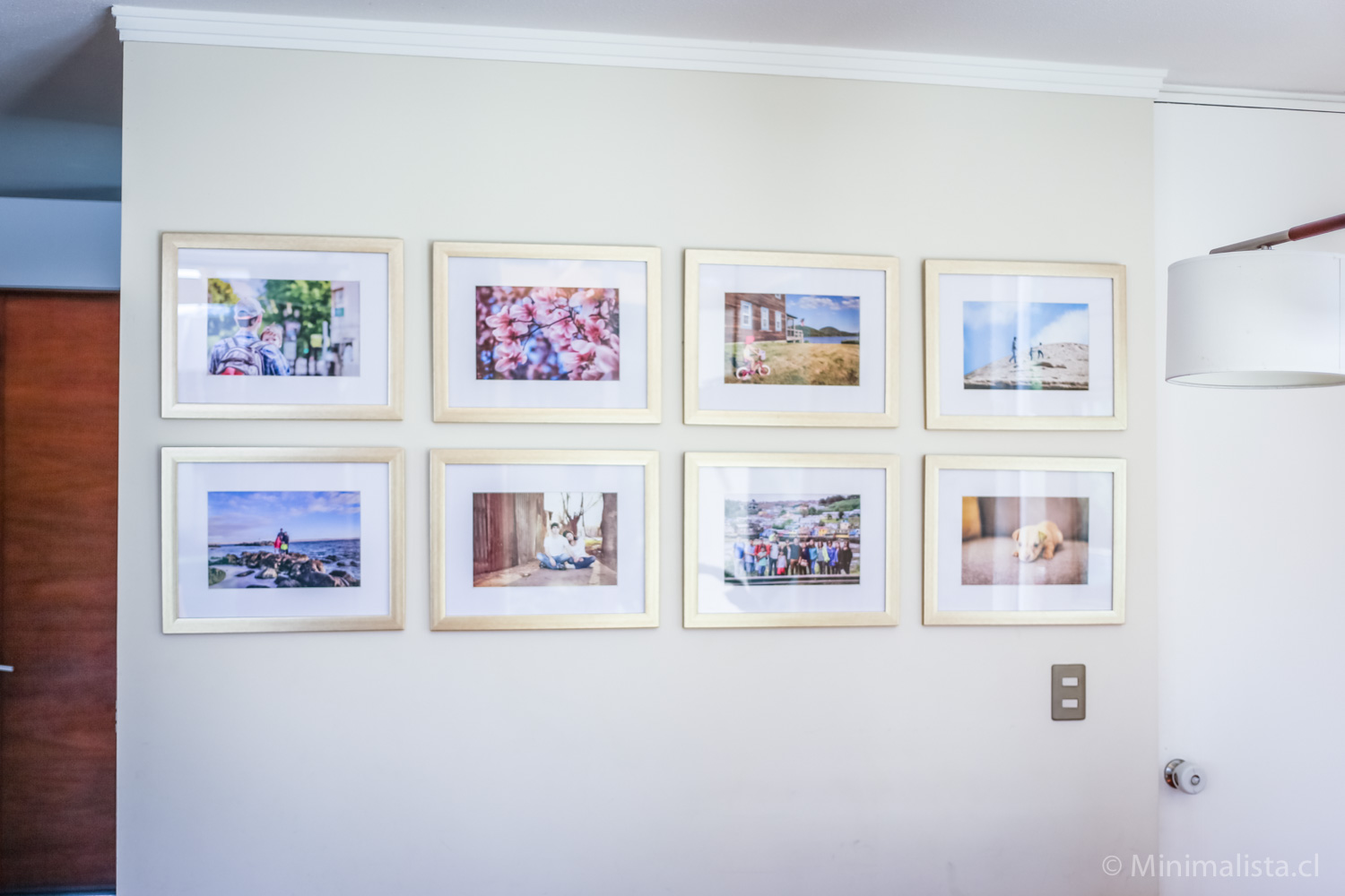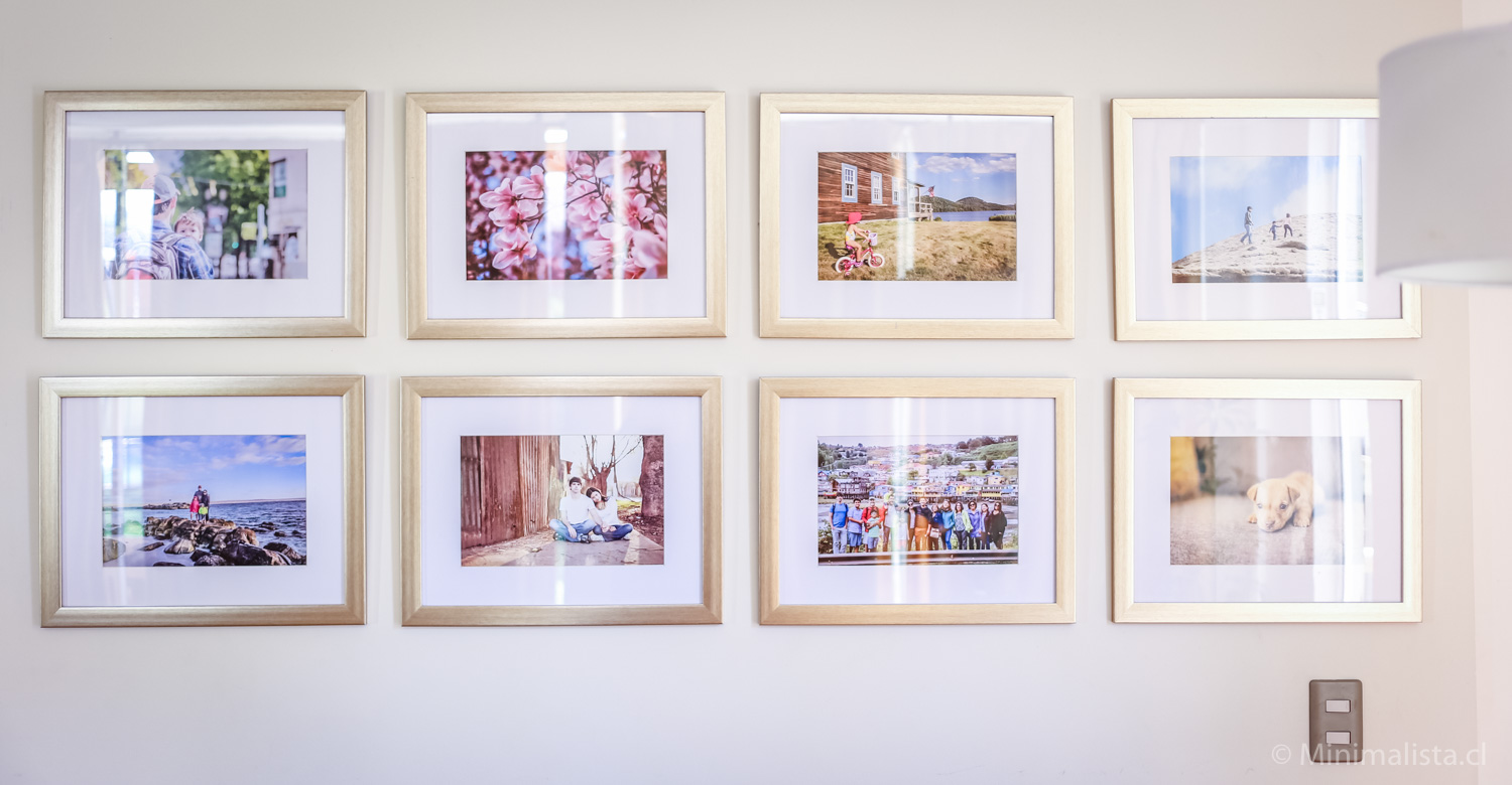 O simplemente mandar a imprimir las fotos y luego llevarlas a un lugar como TodoMarco a que las enmarquen del color que ustedes quieran. Esta segunda opción es más cara y tiene el contra de que no podrán cambiar las fotos, pero es lejos la opción más fácil.