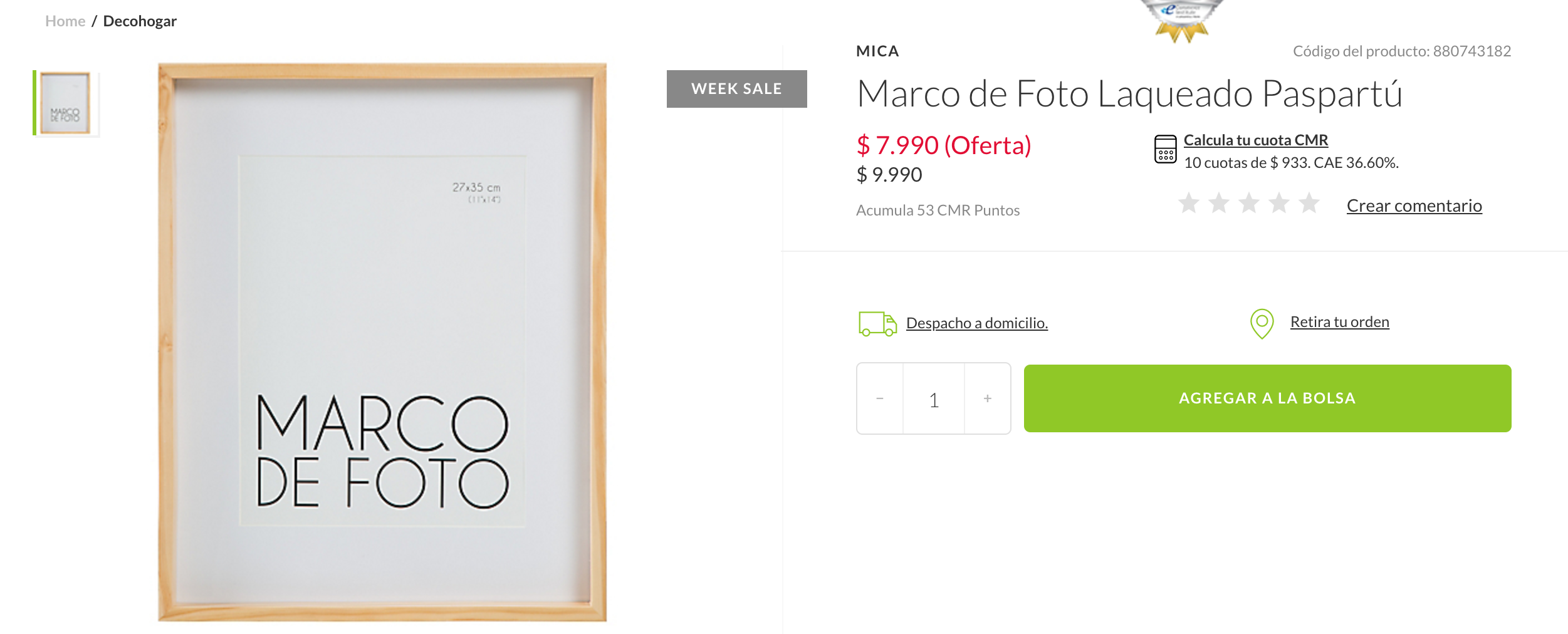 Creo que lo más fácil es comprar un marco que ya venga con paspartú (creo que las galerías se ven más lindas y elegantes con paspartú, además las fotos se aprecian más), como este de Falabella: