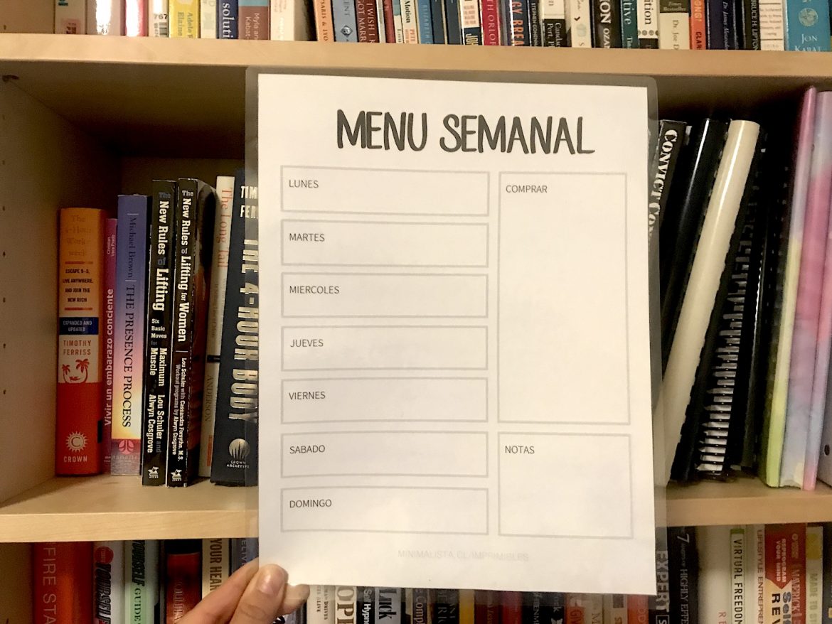 En mi casa hacemos legumbres dos vez a la semana, carne una vez a la semana, pollo una vez a la semana, pescado una vez a la semana y pasta una vez a la semana. Esos son ya 6 días! El séptimo día comemos left overs, que son básicamente las sobras de otros días porque fijo que hay un día super ocupado donde nadie tiene ni tiempo ni energía para cocinar.