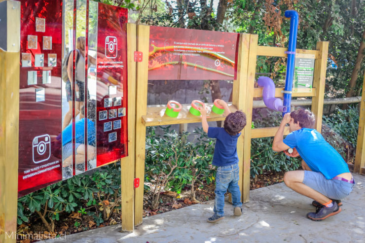 Partimos jugando en la locomotora “La Santiaguina” después los niños fueron a la Plazoleta Miró, y terminaron en la parte de atrás del museo donde hay periscopios, espejos e instrumentos musicales al aire libre.