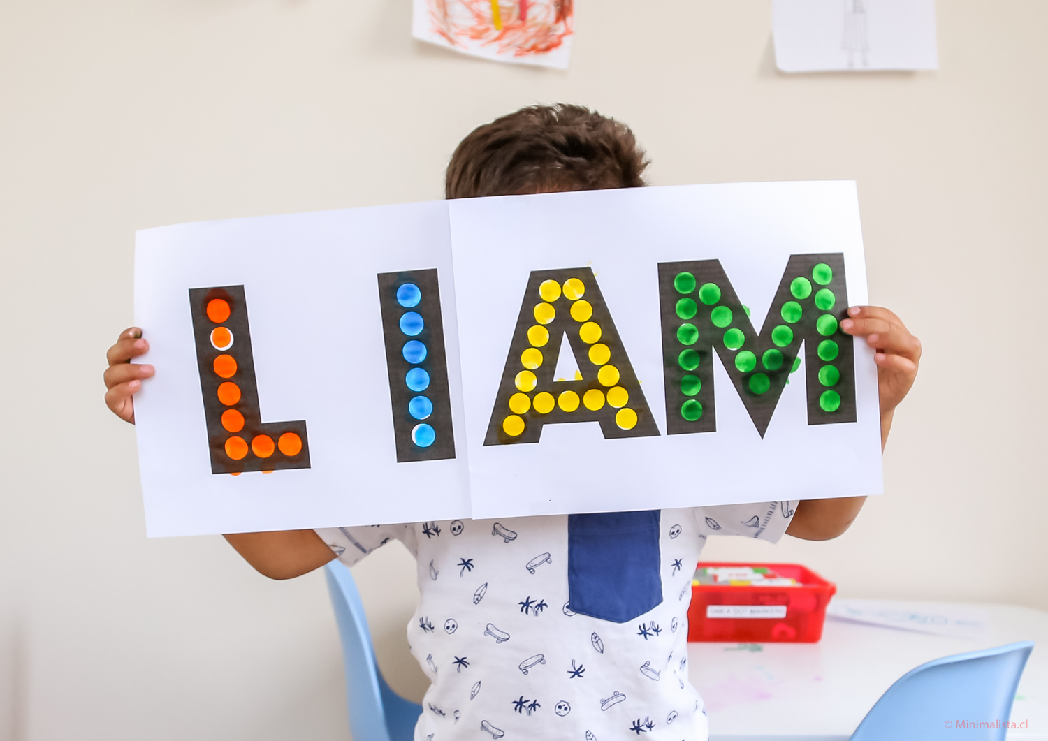 En las últimas semanas, Liam ha mostrado gran interés por escribir su nombre. Hemos trabajado en identificar las letras y buscamos las de su nombre en carteles, envases de comida y cualquier palabra que veamos por ahí. Aún no las identifica por nombre, pero las reconoce cuando las ve.